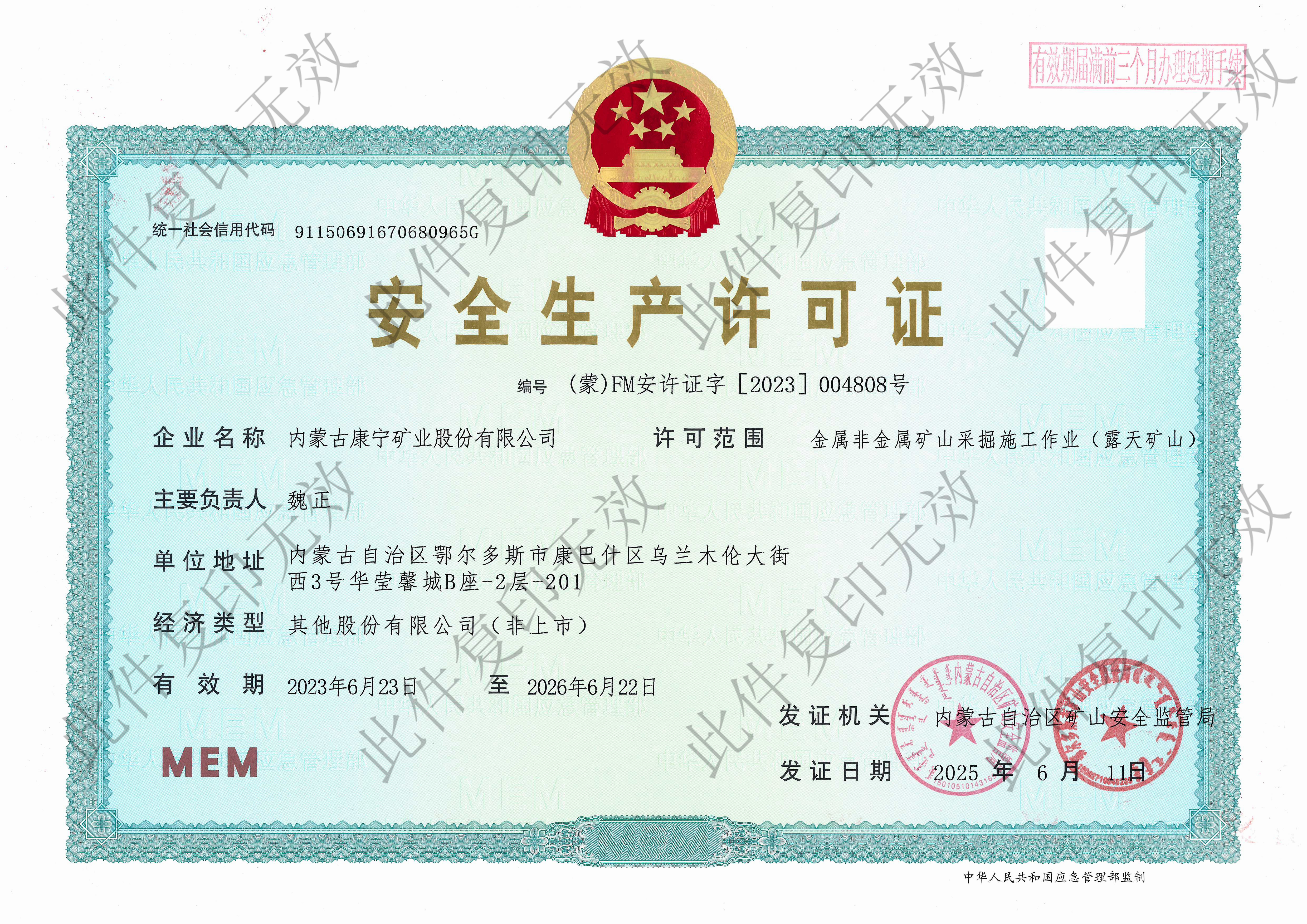安全生产许可证(金属非金属矿山采掘施工作业)